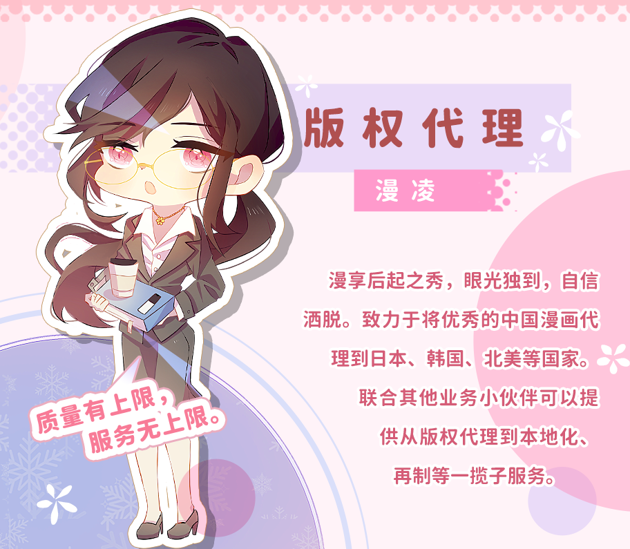 58动漫于2017年成立于北京,现已在香港、成都、沈阳三地设有子公司,业务涉及动漫本地化、动漫版权代理、动漫再制、原创动漫创作等多个领域。 我们的理念:择一事终一生,58动漫希望做动漫行业的匠人,希望为每个用户提供极致的服务和作品。